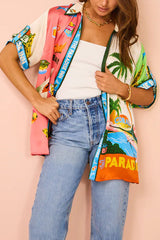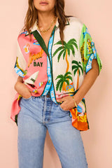 Kissed By The Sun Satin Unique Print Colorblock Button Down Oversized Blouse