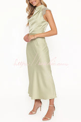 - Neckline: Drape High Neck