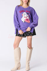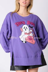Halloween Cartoon Ghost Sequin Loose Casual Sweatshirt