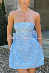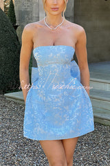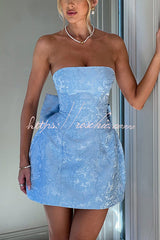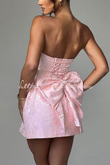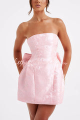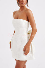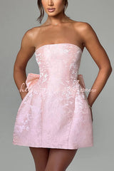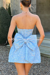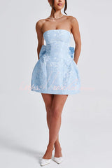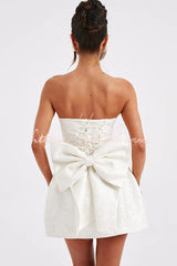 Palace Style Jacquard Fabric Off Shoulder Backless Lace-up Bow Mini Dress