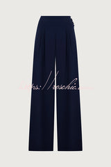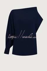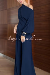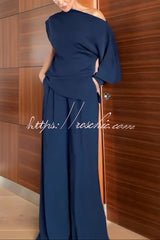 Cleo One Shoulder Irregular Balloon Sleeve Top and High Rise Pleated Button Waist Pocket Loose Pants Set