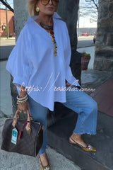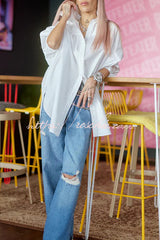 Easy and Modern Button Up Sculptural Sleeve Slit Oversized Midi Blouse