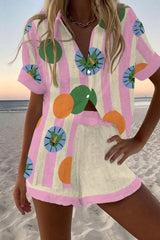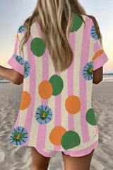 Polka Dot Lion Print Loose Button Elastic Waist Shorts Set