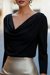 Solid Color V-neck Draped Long-sleeved Casual Shirt