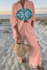 Unique Print Oversized Shirt and Elastic Waist Pocket Pants Set