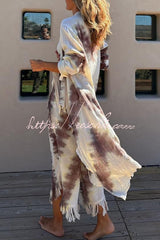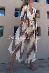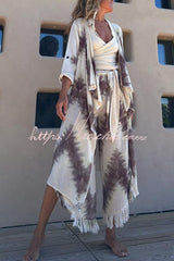 Kailani Linen Blend Tie-dye Print Irregular Hem Duster Kimono