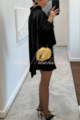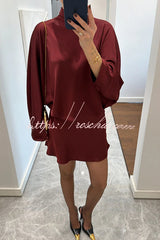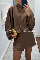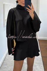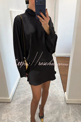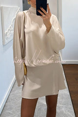 Solana Satin Draped Ribbons High Neck Long Sleeve Elastic Waist Mini Dress
