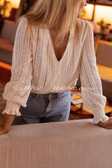 Elegant Openwork V-neck Long-sleeved Casual Shirt