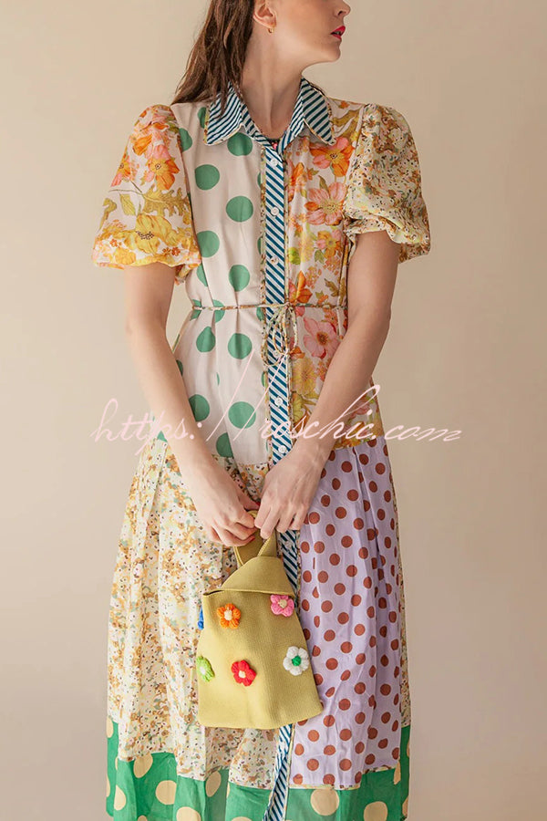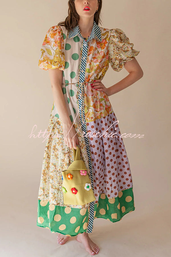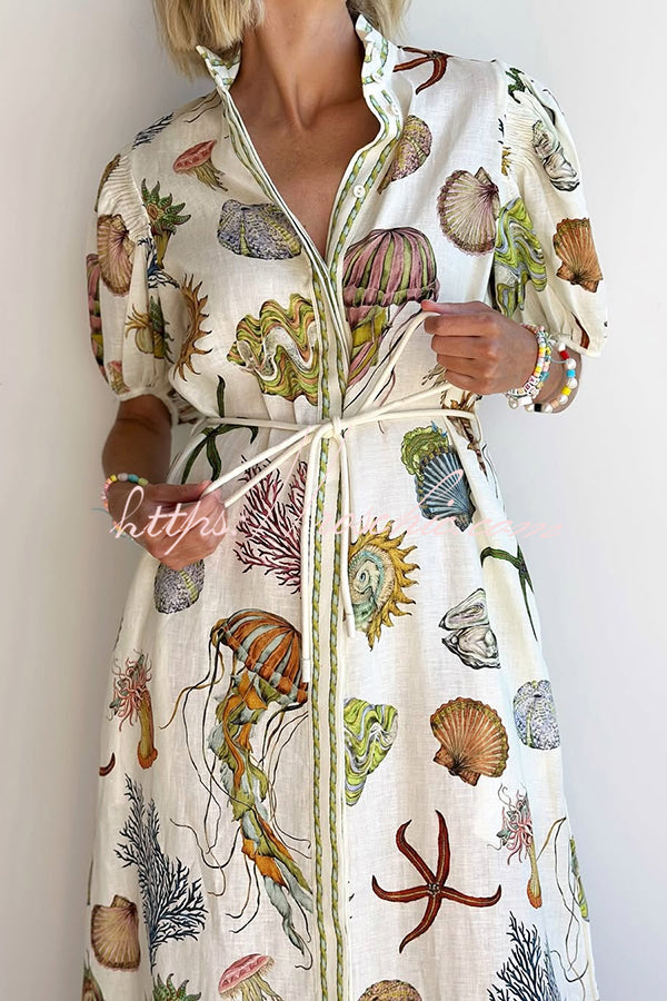 Leopard Print Lapel Long-sleeved Fitted Midi Dress