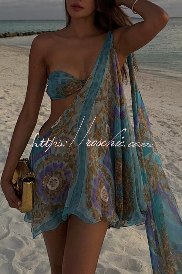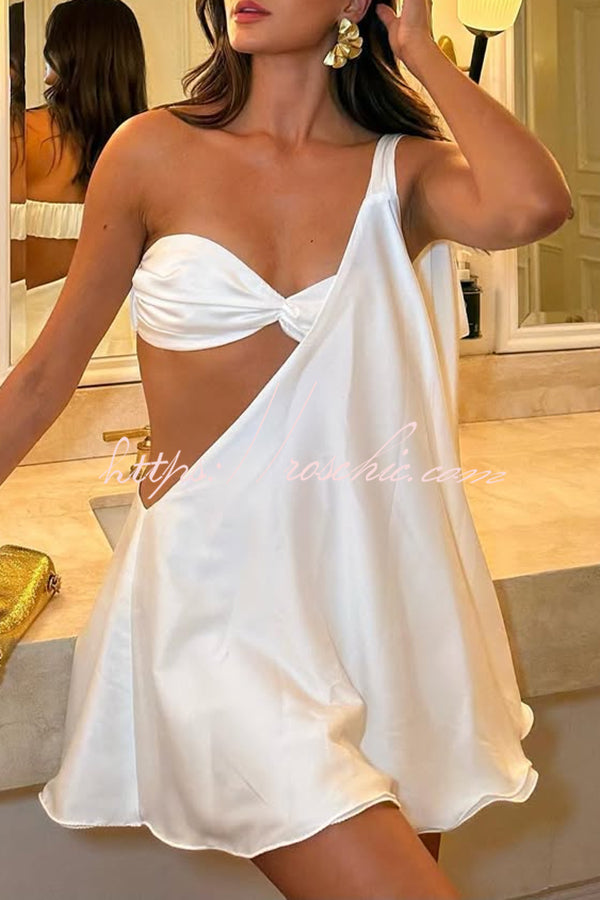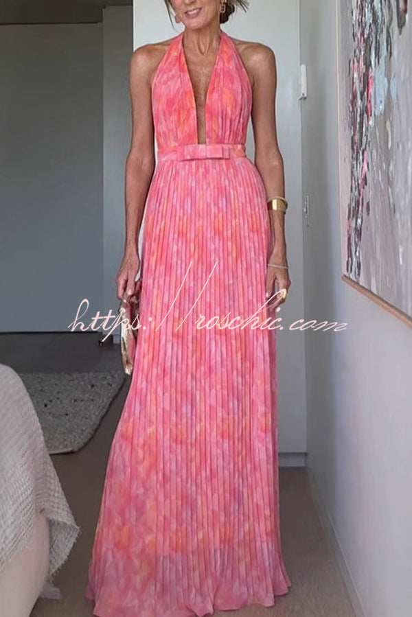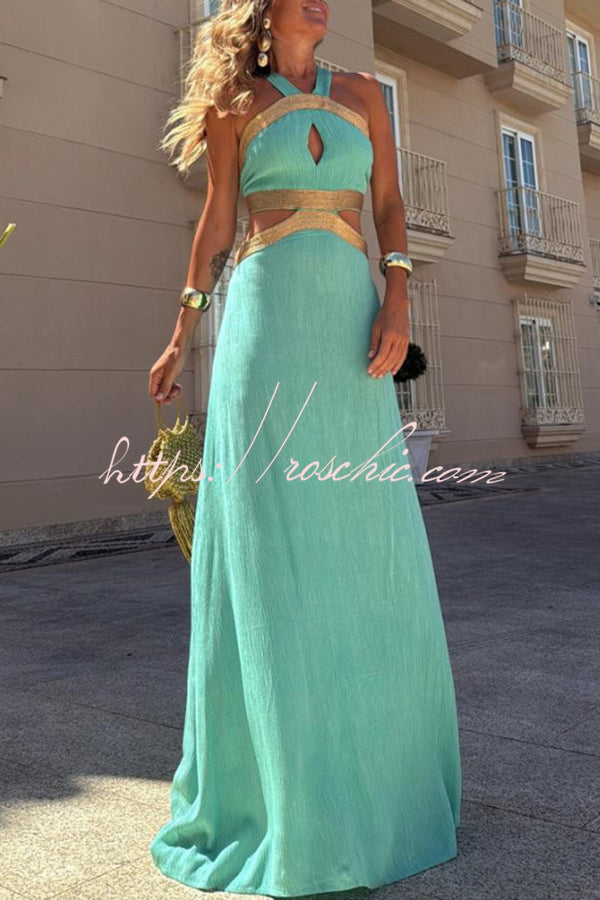 Chic City Sequin Faux Fur Trim Halter Tie-up Mini Dress
