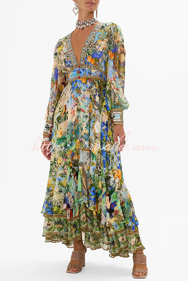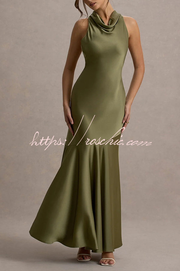 Solid Color Satin V-neck Long-sleeved Elegant Midi Dress