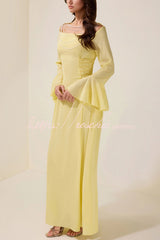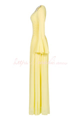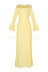 Fashionable Beaded Long-sleeved Square-neck Fitted Waist Tie Maxi Dress