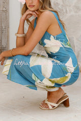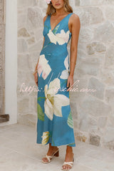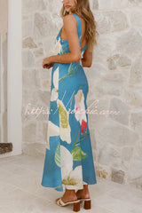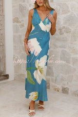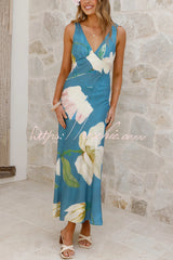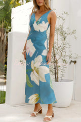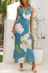 Floral Print V-neck Sleeveless Backless Slim-fit Casual Holiday Maxi Dress