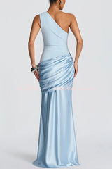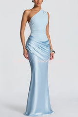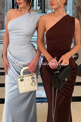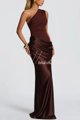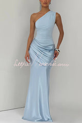 Stylish One-shoulder Sleeveless Satin Draped Slim-fit Maxi Dress