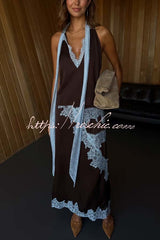 Sunday Social Contrast Color Satin Lace Trim Mid Rise Maxi Skirt (Shipped Within 24 Hours)