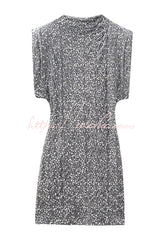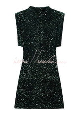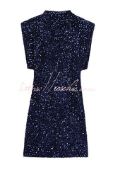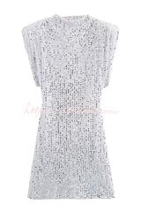 Fashionable Sequined Round Neck Sleeveless Slim-fit Mini Dress