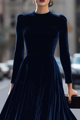 Solid Color Velvet Round Neck Long Sleeve High Waist Maxi Dress