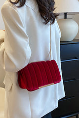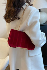 This elegant velvet shoulder bag. The exterior is made of velvet fabric. Also comes with a 120 cm metal shoulder chain. Can be worn as a clutch or crossbody!