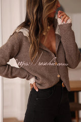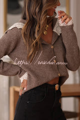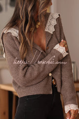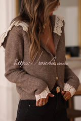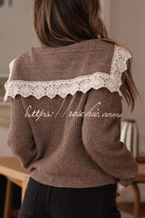Fashionable Lace-trimmed Sailor Collar Casual Knit Cardigan