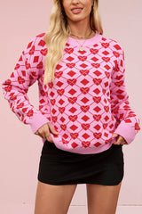 Fashionable Heart-shaped Jacquard Loose Long-sleeved Knit Sweater