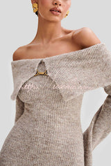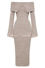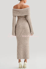 Solid Color Off-shoulder Long-sleeved Elegant Slim-fit Knit Maxi Dress