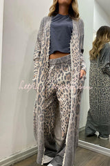 Comfort first Leopard Print Pocket Long Sleeve Cardigan Elastic Waist Pants Set