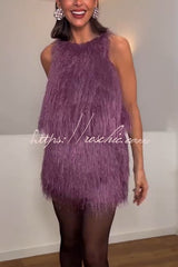 Flowing Elegance Layered Tassels Mid Rise Elastic Waist Loose Mini Skirt