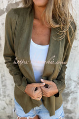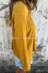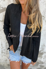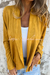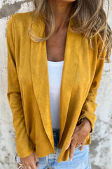 Solid Color Suede Lapel Long Sleeve Loose Coat