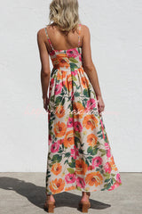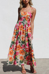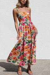 Floral Print Sleeveless Square Neck Casual Holiday Midi Dress