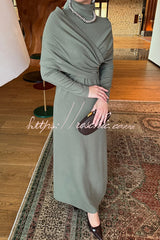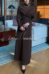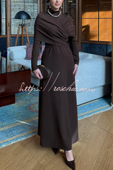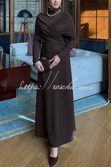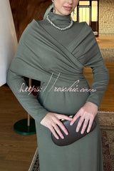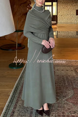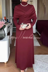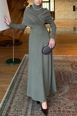 Solid Color High-neck Long-sleeved Crossover Waist Slim-fit Maxi Dress