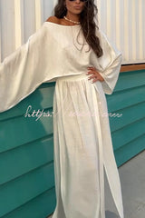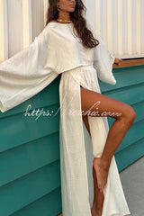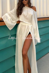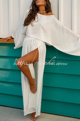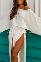 Seaside Leisure Linen Blend Solid Color Elastic Waist High Slit Maxi Skirt
