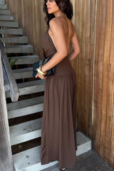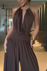 - Neckline: Metal Ring Drape Cowl Halter Neck