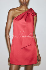 Perfect Holiday Date Oversized Bow Detail One Shoulder H-line Mini Dress