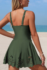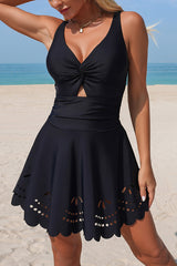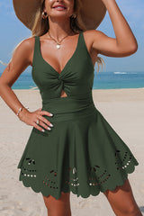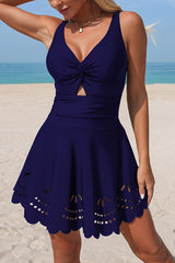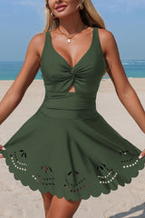 Solid Color Crossover V-neck Hollowed-out Stretch One-piece Swimsuit