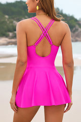Solid Color V-neck Tie-trimmed Stretch One-piece Swimsuit
