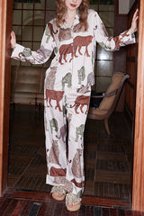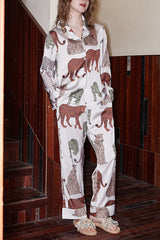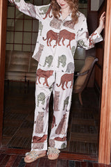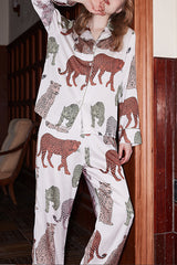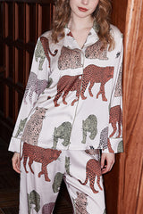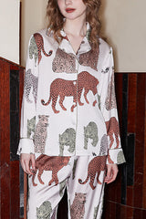 White North China Leopard Print Home Long Sleeve Two-piece Set