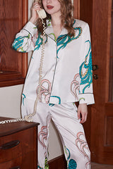 White Background Octopus Print Home Long-sleeved Two-piece Set