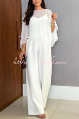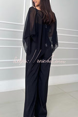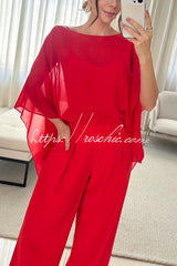 Vanie Chiffon Cape Batwing Sleeve Top and High Waist Pocket Wide Leg Pants Set