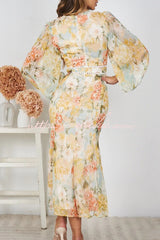 Pamelia Floral Print Irregular Pleated Tuxedo Skirt Pearl Maxi Dress