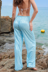Stylish Sequined Elastic Waistband Casual Straight Leg Pants