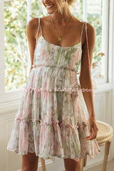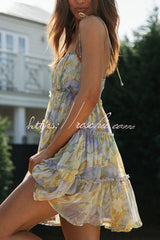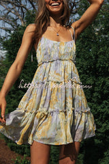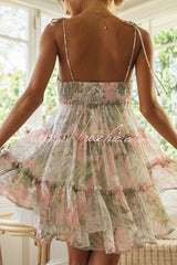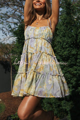 Capri Kisses Floral Tiered Ruffle Smocked Back Slip Mini Dress