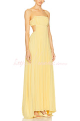 Butter Moment Pleated Cutout Waist A-line Slip Maxi Dress